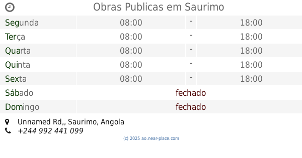ver mapa maior e direçõesLatitude: -9.6593894, Longitude: 20.3971786